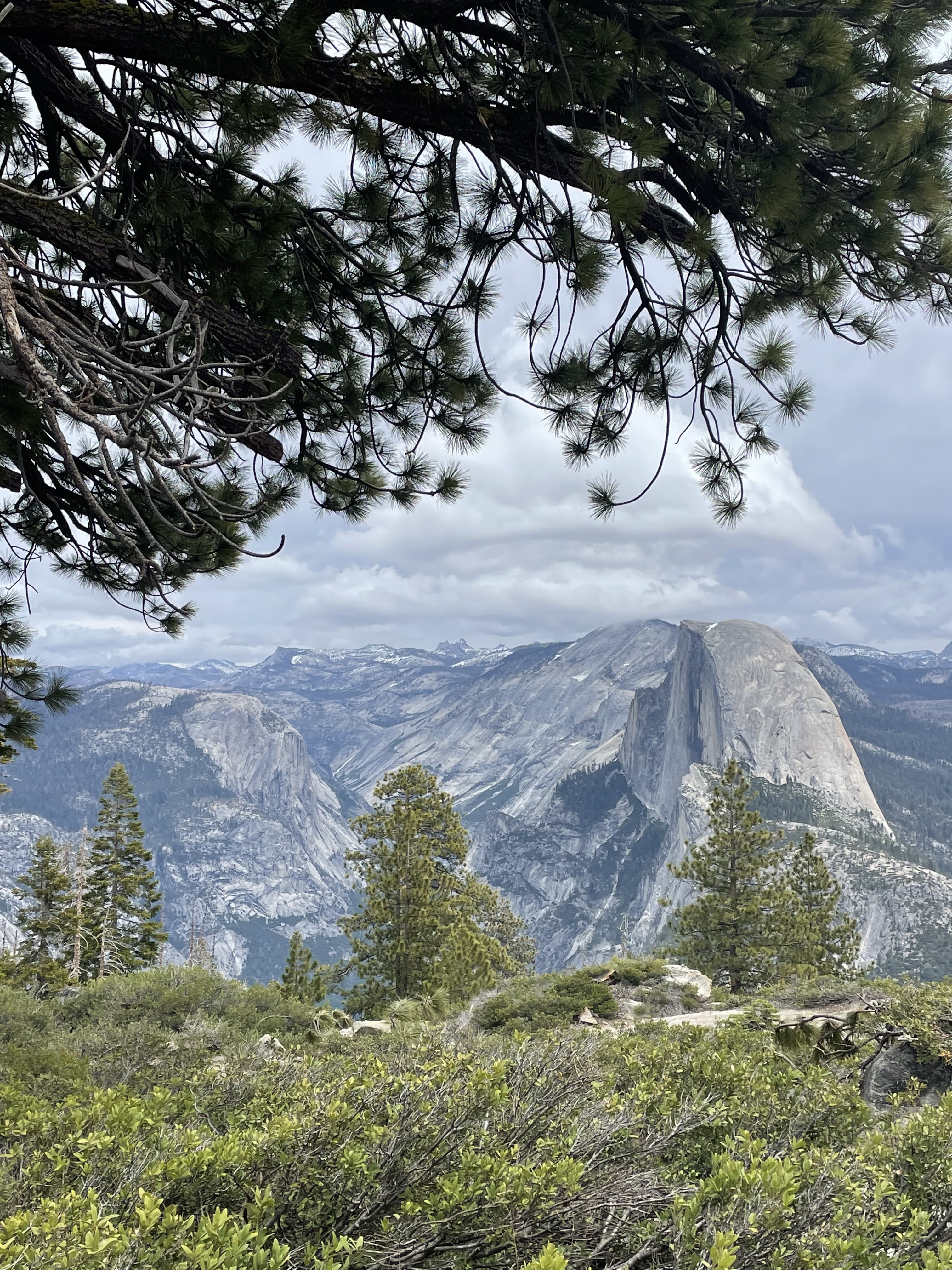 From Sequoia National Park, we drove to Yosemite National Park. Our first stop in Yosemite was the Washburn Point overlook. There were amazing views of Half-Dome and the Nevada Fall and Vernal Fall.